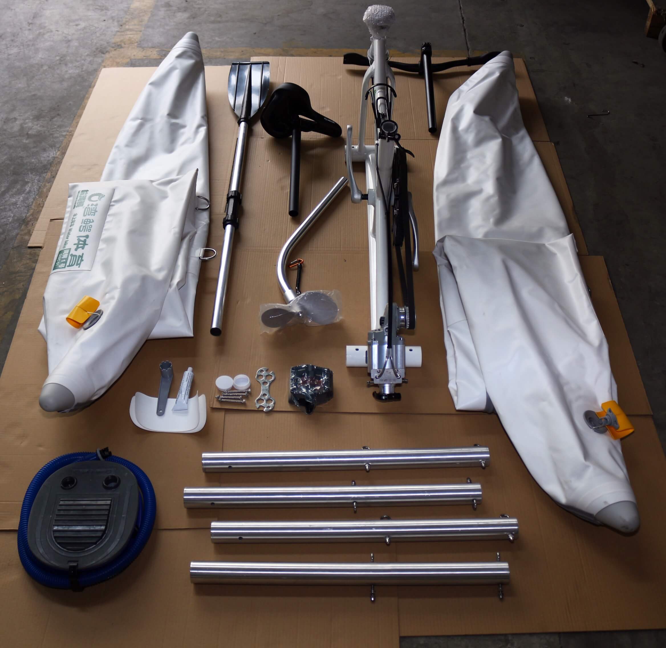 We don't sell water bike parts separately, only when orders than 50 sets, we accept custom frame colors, frame logos, pontoons color and pontoons logo.